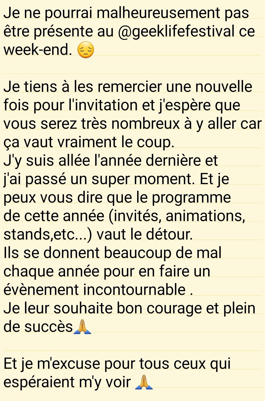 Shyvahna On Twitter Update Je Ne Pourrai Malheureusement Pas Etre Presente Au Geeklifelemans Pour Raisons Personnelles