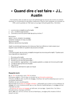 Expose Quand Dire C Est Faire J L Austin Texte Studocu