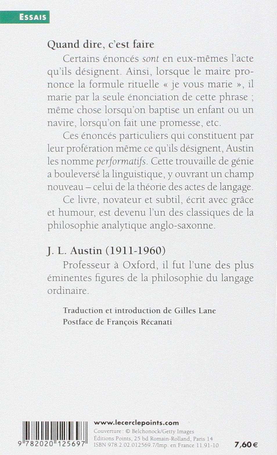 Austin - Collection Points essais - Librairie Decitre. Il cherche à informer inciter demander convaincre promettre etc. Quand dire cest faire.