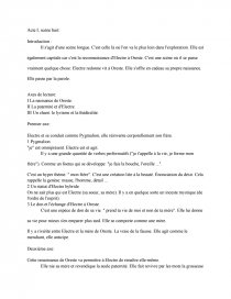 Il véhicule le message de la tragédie à travers la relecture dun célèbre mythe grec. Dans la scène 8 de lacte I on assiste aux retrouvailles dElectre et de son frère. Nous étudierons dabord ses relations avec son frère puis avec ses parents.
