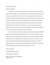 Commentaire de texte de 2 pages en littérature. Jean Giraudoux Électre acte II scène 9 extrait. ELECTRE JEAN GIRAUDOUX ACTE 1 SCENE 8 Les épreuves anticipées du bac approchentvoici un petit commentaire pour vous donner des idées.