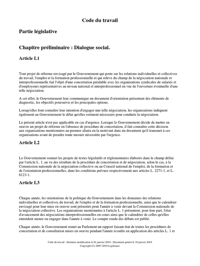 Code du travail PARTIE 1 - LES RELATIONS INDIVIDUELLES DE TRAVAIL LIVRE 1 - Dispositions préliminaires TITRE 3 - Discriminations CHAPITRE 4 - Actions en justice PARTIE LÉGISLATIVE SECTION 1 - Dispositions communes. Loi n 2016-1547 du 18 novembre 2016 Cessation du manquement et indemnisation. Lisez ce Politique et International Commentaires Composés et plus de 31 000 autres dissertations et fiches de lecture.