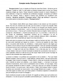 La littérature sexplique aussi par les motifs de lécriture. Fut écrit en réponse aux critiques décrivains qui se voulaient consternés par lengagement de Sartre exprimé dans les Temps Modernes. Fiche de lecture de 3 pages en sociologie.
