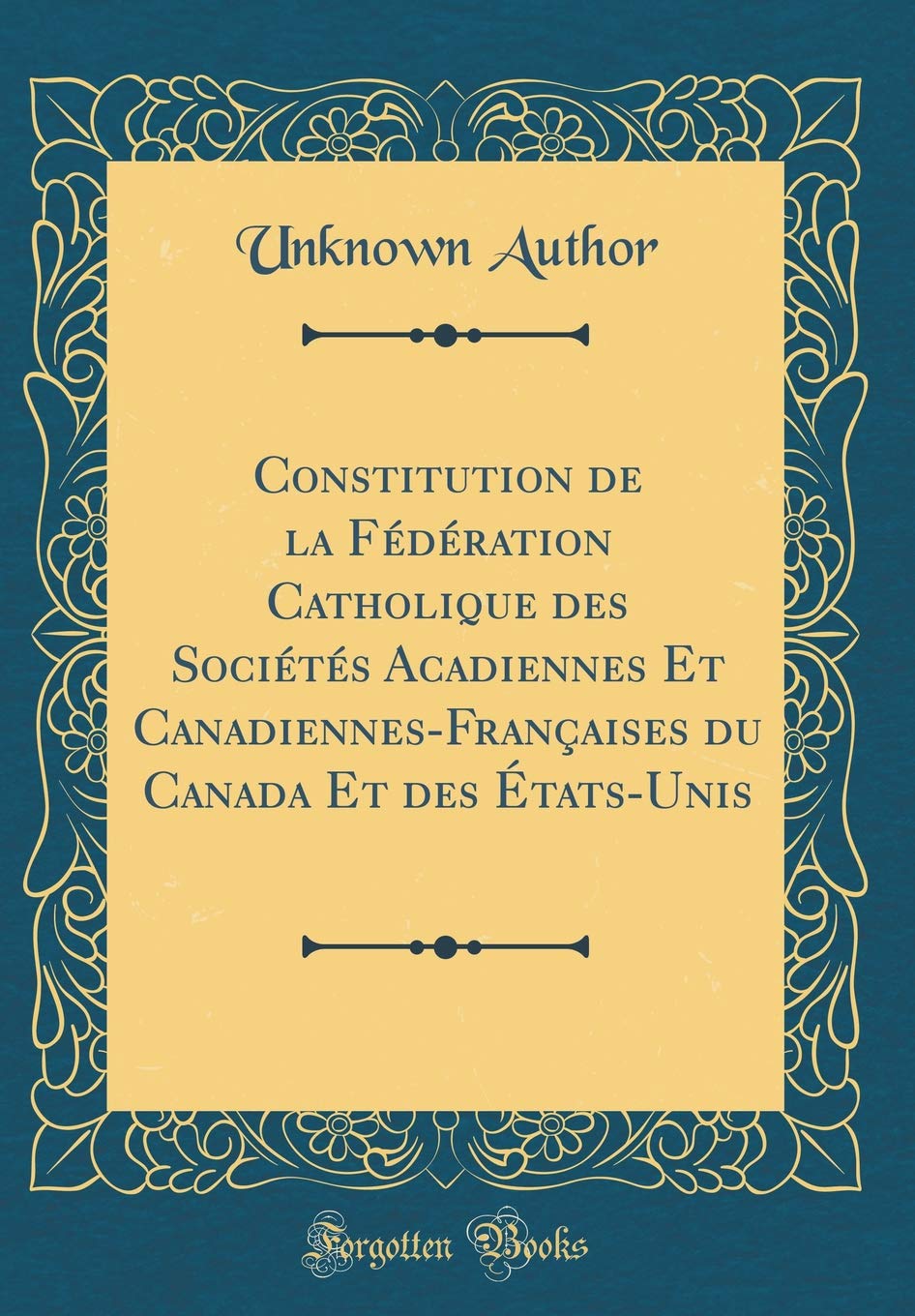 Constitution De La Federation Catholique Des Societes Acadiennes Et Canadiennes Francaises Du Canada Et Des Etats Unis Classic Reprint French Edition 9780260545398 Amazon Com Books