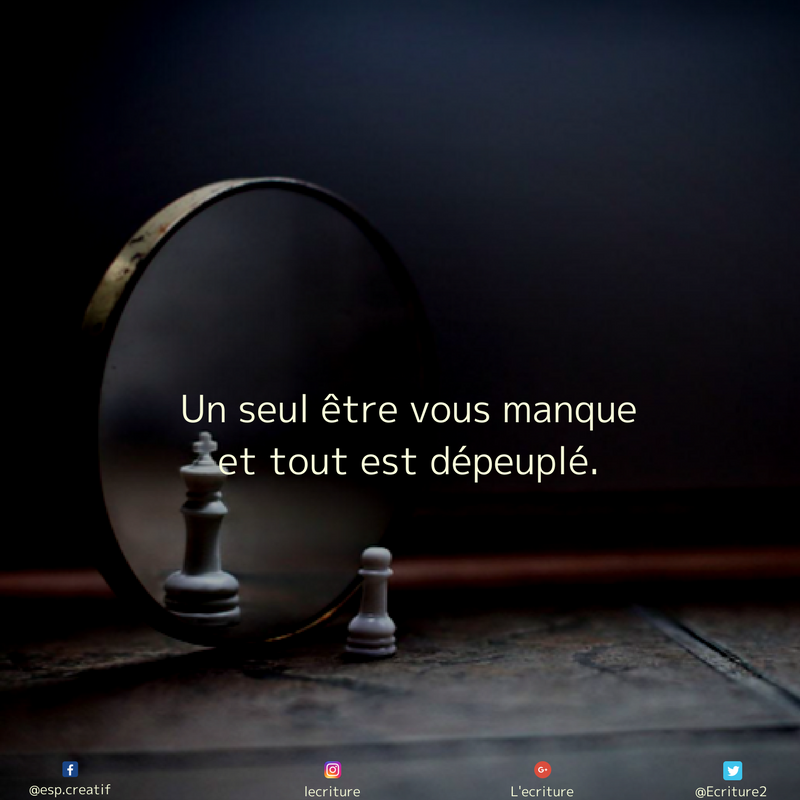 Retrouvez de 100 000 citations avec les meilleures phrases Un seul être vous manque et tout est dépeuplé les plus grandes maximes Un seul être vous. Un seul être vous manque et tout est dépeuplé Alphonse De Lamartine. Retrouvez de 100 000 citations avec les meilleures phrases depeuple les plus grandes maximes depeuple les plus belles pensées depeuple provenant dextraits de livres magazines discours ou dinterviews répliques de films.