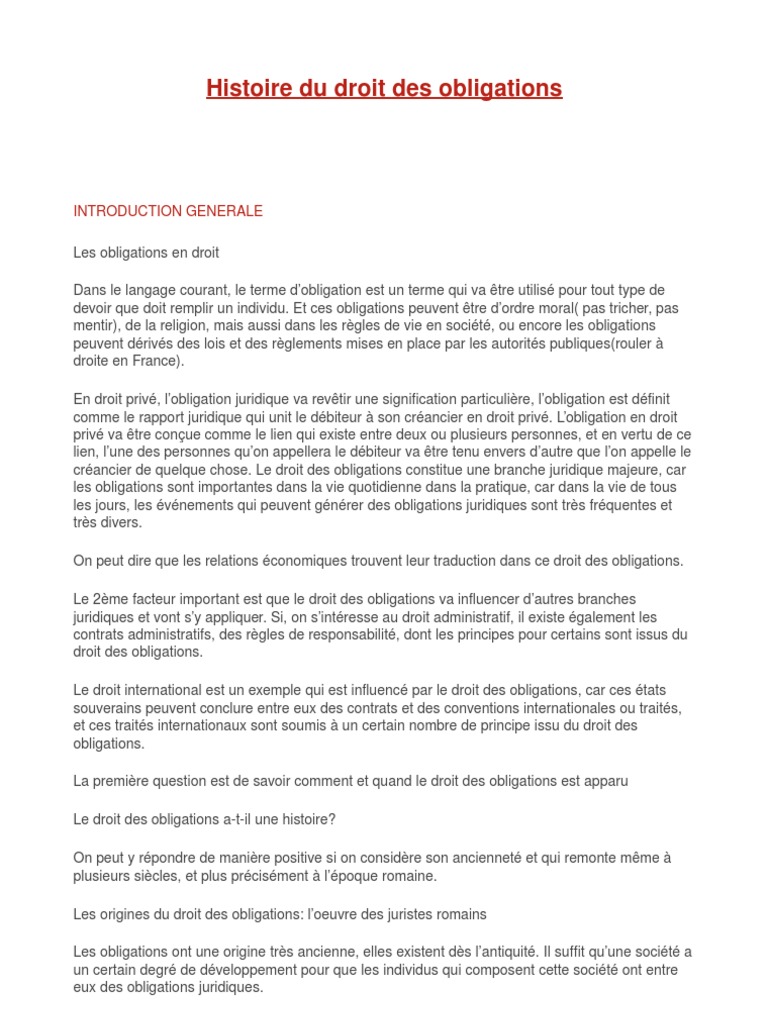 Histoire du droit des obligations introduction. Ce document a été mis à jour le 05112012. Le droit des obligations est la colonne vertébrale du droit public.